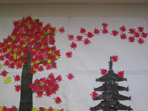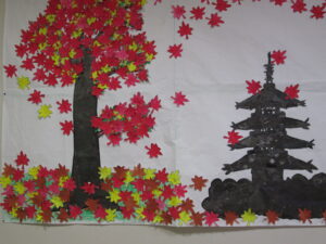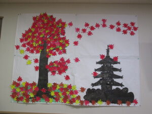 緑から始まった秋の壁飾りは黄色から赤い葉へと色づきを変化させました!