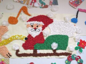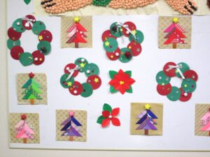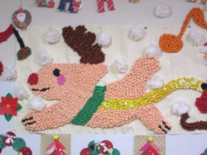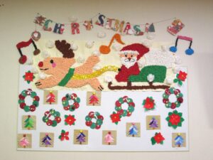 サンタとトナカイの下も歴代のクリスマス飾りで