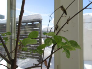 今年も他の植物よりも先に新芽が出てきた柿の木「せっちゃん」。
