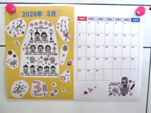 あすもでは今週、3月のカレンダー作りが行われますよ~(⋈◍>◡<◍)。✧♡