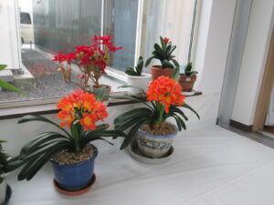 殆どが蕾の状態で、渡り廊下では順番に長くクンシランの花を楽しめそうです!