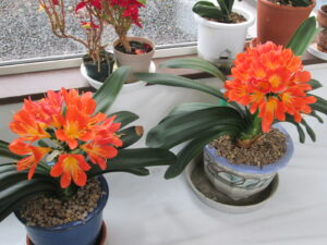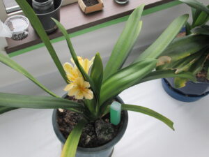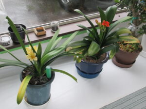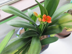 黄色い花のクンシランはほぼ満開なのですが、オレンジ色のクンシランは